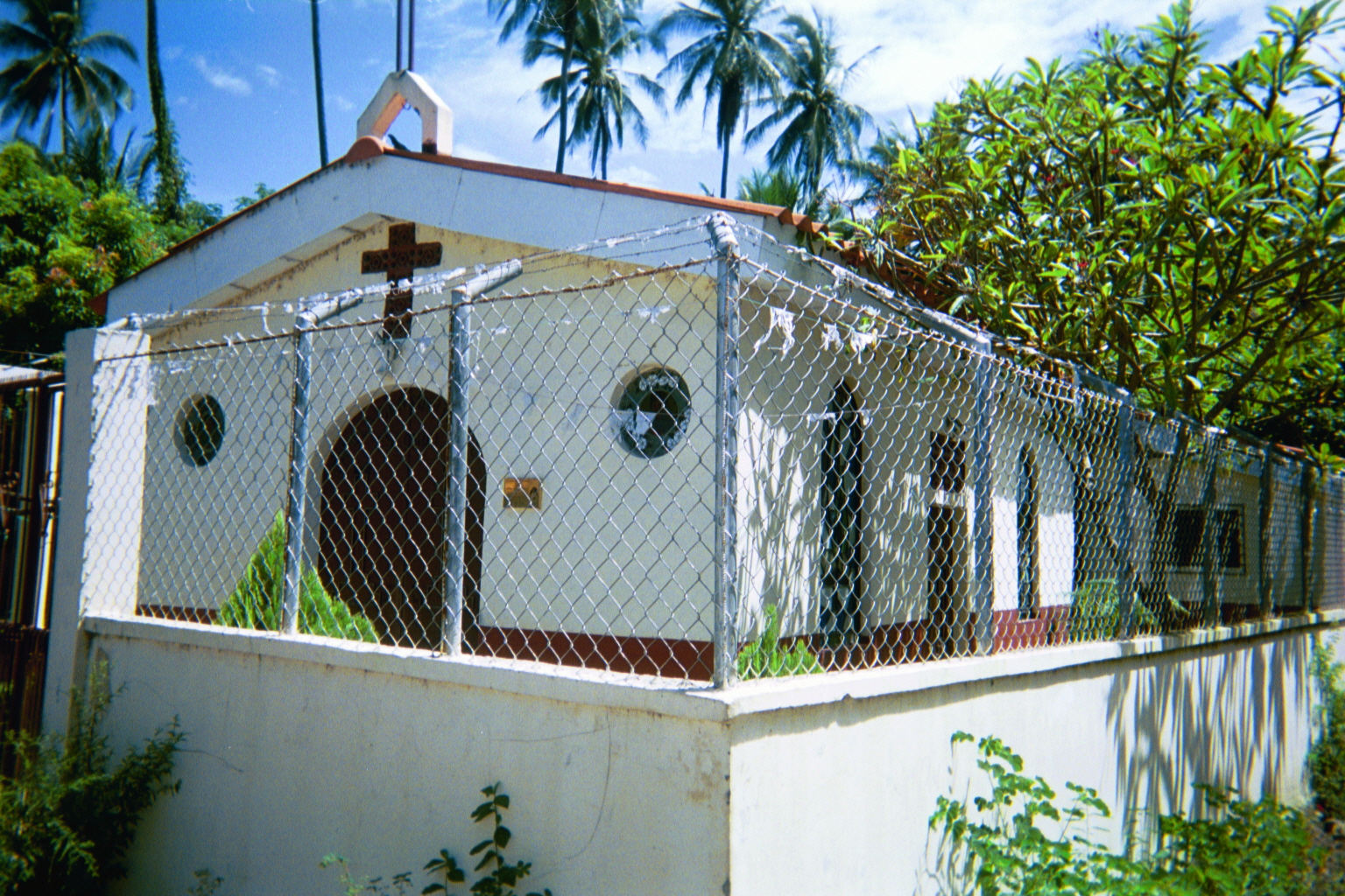 The church in El Escobal: Nearly every building and home we saw was surrounded by barbed-wire fences.