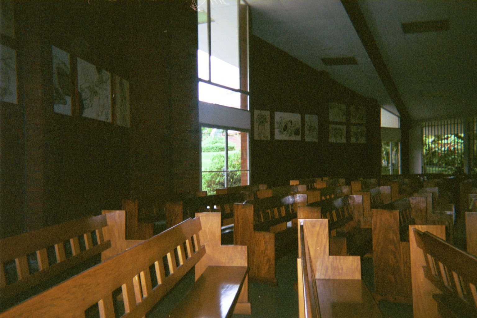 Inside another church: Instead of the Stations of the Cross that are frequently seen on the walls of Catholic churches, this church's walls bear scenes of the suffering of El Salvadoran people.