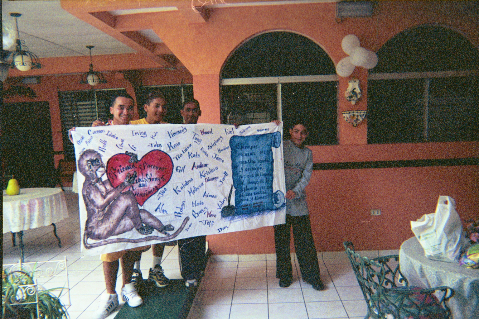 At the end of our stay, our friends from Creaciones made us a banner to take home that read "Friends forever." The names on the banner are those of everyone in our youth group and those of people in our church who work with us, along with those of Creaciones members.
