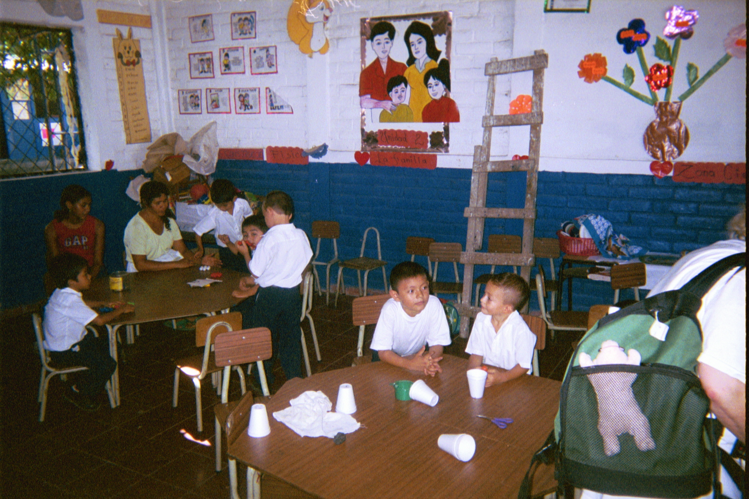 We taught the children the song "Paz y Libertad" ("Peace and Liberty"). Carmen, the little girl in the checkered shirt, hardly left our side all week.