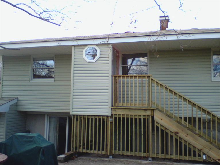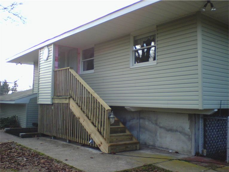 The new front stairs: These take the place of the narrow, crumbling, old cement stairs. There's so much more room now, even though the new stairs are only about 2 to 3 feet wider. No more feeling as if we're going to fall off the stoop when the boys crowd us while we're trying to unlock the front door!