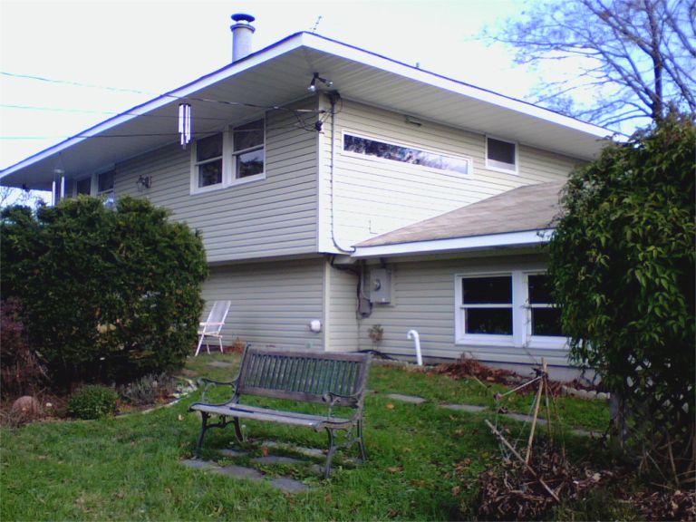 This is the south side of the house, which houses our wood shop. When Ed had his own cabinetmaking business, the shop was where he built furniture and cabinets.