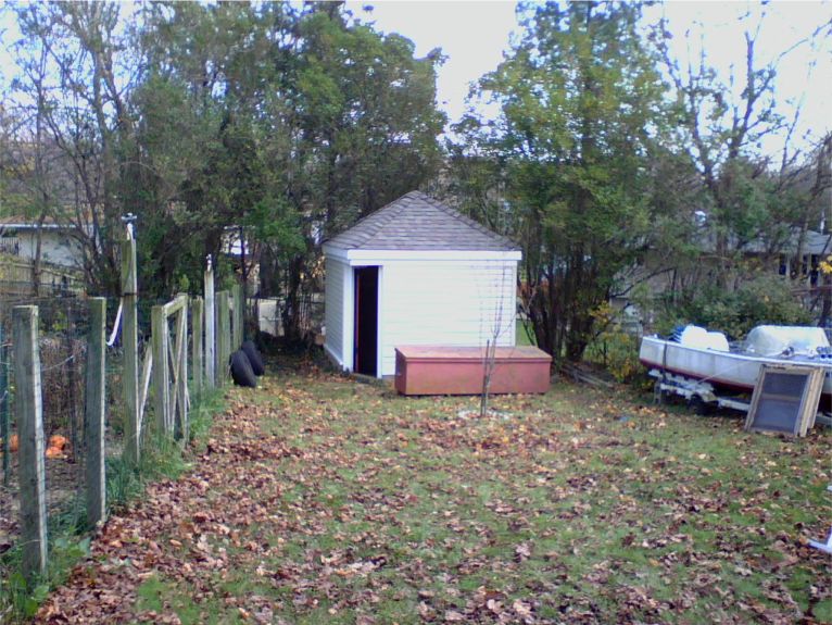 Even our tiny garden house (what most people call a tool shed) got new siding, and after 30-plus years, it got a new roof. It still needs its dark door refaced. You can see our vegetable garden's fence running the length of the left side of the photo. The ancient, rotting boat at the right was Ed's first outboard, a little wooden dory from the late 1950s that Ed restored; he bought it when he was 15 years old and restored it. The boat, now retired, is older than Ed is. It's been replaced by the At Last! and must be moved to the town dump.